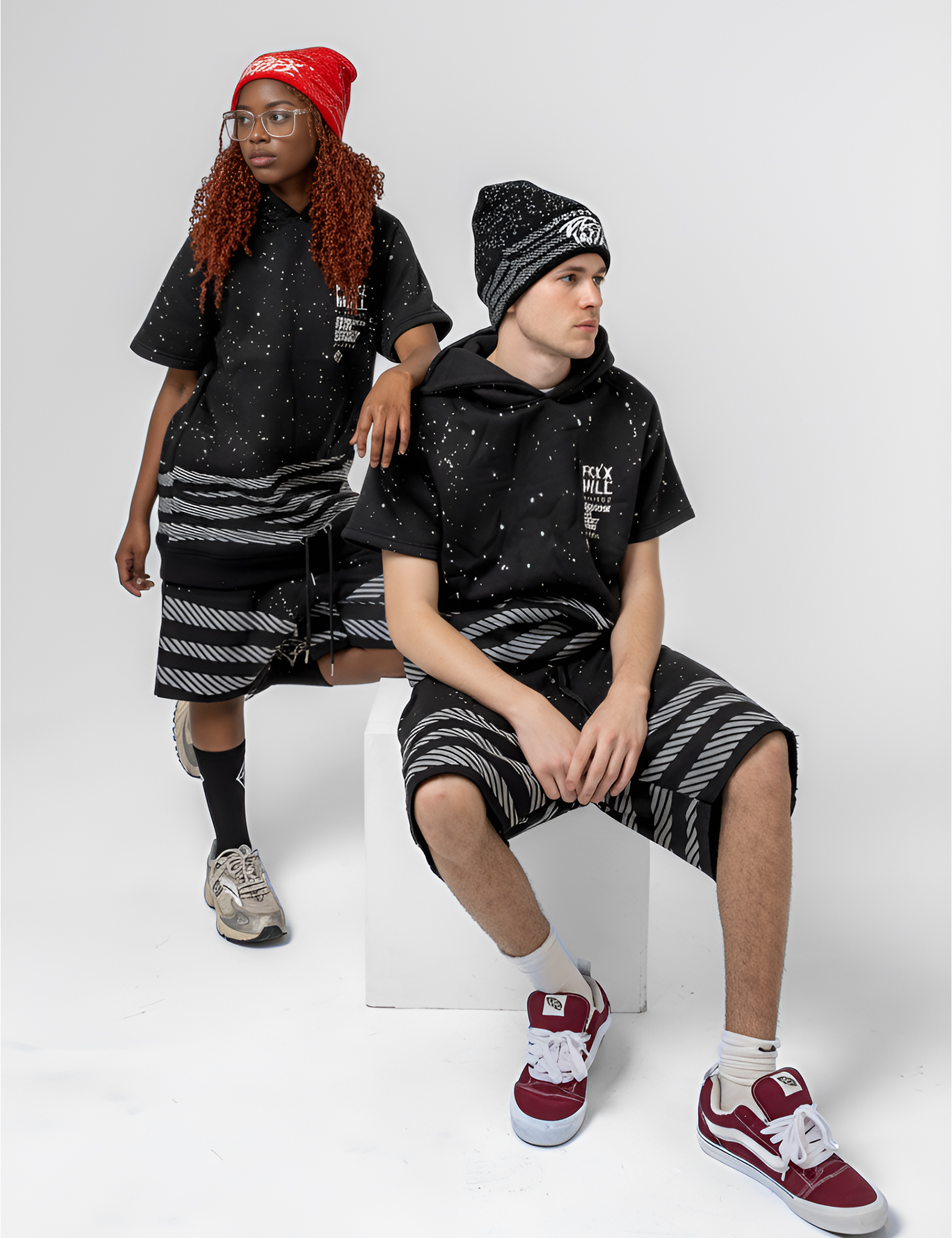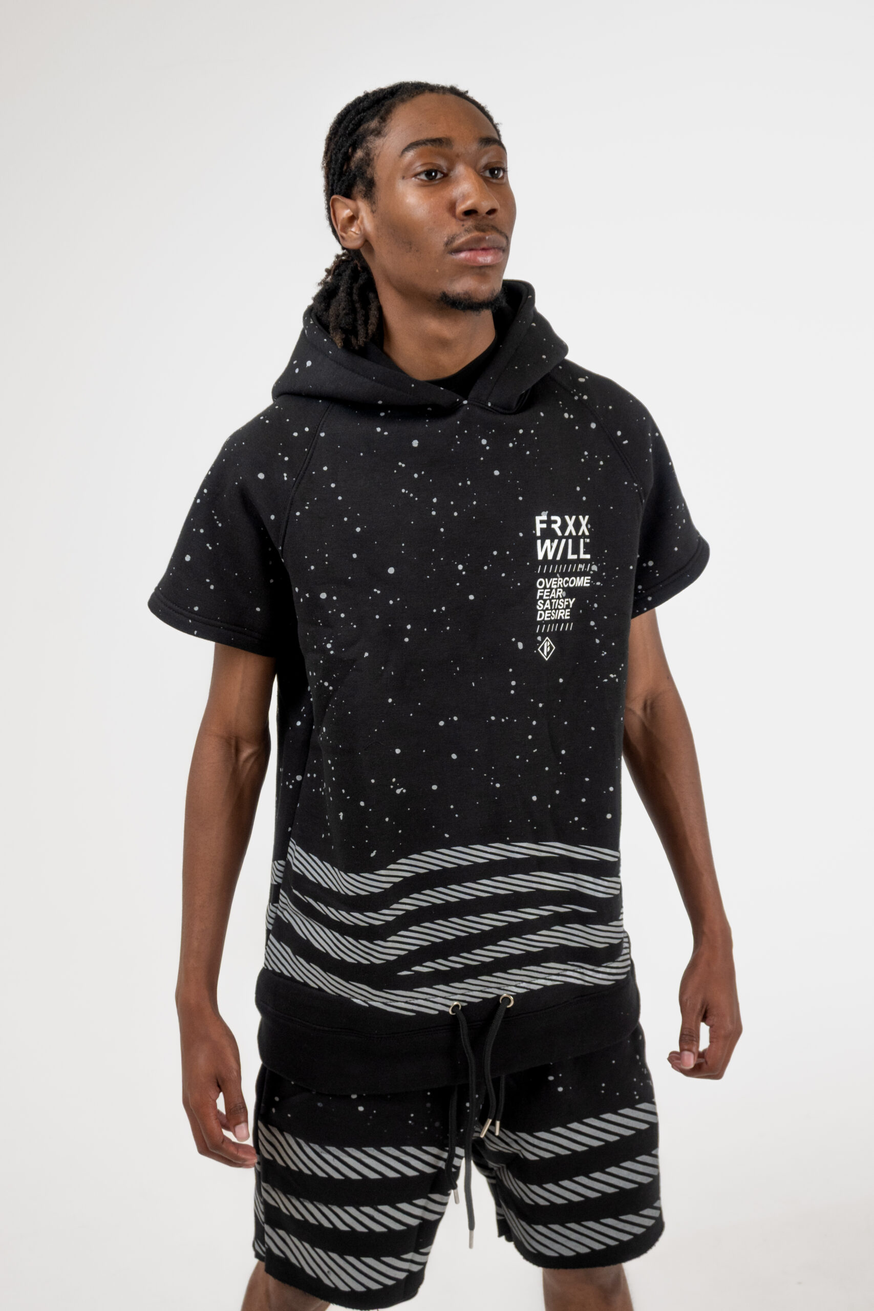 Elevated comfort meets everyday edge. The Frxxwill cotton fleece set features a relaxed-fit short sleeve hoodie paired with matching sweat shorts, both crafted from ultra-soft 100% cotton fleece. Designed for effortless layering and breathable warmth, this set brings streetwear aesthetics to leisurewear comfort.